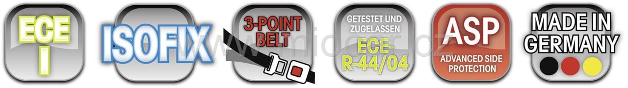- Pro oblast hlavy je sedačka o 25% bezpečnější, než vyžaduje norma, v oblasti trupu je to o 37% (ECE 44/04).