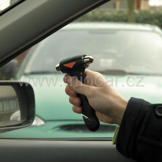 Bezpečnostní kladívko je vybaveno ostrými hroty pro rozbití okna v případě nouze, nožem k přeříznutí bezpečnostmích pásů. Tento výrobek je dodáván s držákem.