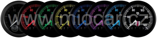 Paměť maximálních a minimálních hodnot tlaků, voltů. Programovatelný alarm. Nastavitelná barva podsvícení u alarmu. Jakmile se překročí nastavená hodnota, mění se barva podsvícení. Pokud je nastavená hodnota překročena o více než 10%, budík se rychle rozbliká. Přípojka příslušenství, např.: větrák, pumpa, … (potřeba relé). Budíky pro měření teploty mají zabudovaný spínač větráku. Budíky pro měření tlaku mají zabudovaný spínač pumpy. 0-5 voltů analogový vstup pro datový záznam nebo ECU. Nastavitelná barva podsvícení. Tyto precizní přídavné budíky kombinují přesnost digitálního mikroprocesoru s vysoce přesným krokovým pohybem ručičky a tím nabízejí novou úroveň přesnosti u budíků 52mm. Kombinují odolnost a čitelnost 270° mechanických budíků a snadnou instalaci budíků elektrických. LED podsvícení a osvětlená ručička zaručují perfektní čitelnost ve dne i v noci. Dodáváno včetně senzorů a instalačního materiálu (palivoměr a voltmetr bez).
