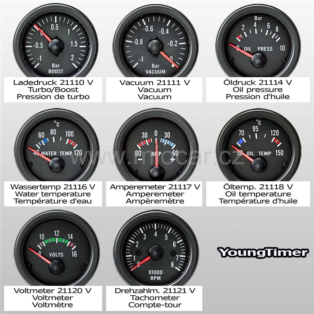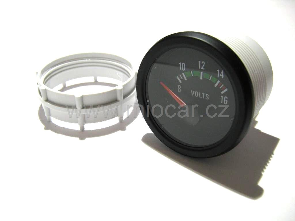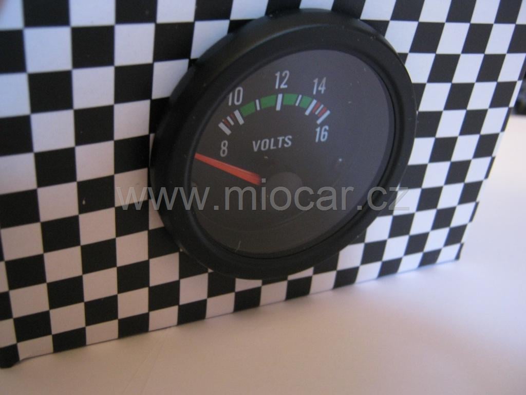 Přídavný budík voltmetr měří napětí v palubní síti vozidla. Pracuje v rozmezí 8-16V pomocí tohoto přístroje lze snadno kontrolovat správné dobíjení vozidla.