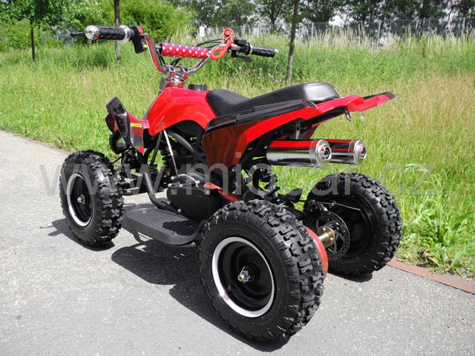 Tato benzínová dětská čtyřkolka s obsahem motoru 49 ccm je určena pro děti cca od 3,5 roku do cca 8 let. Při maximální nostnosti 80 kg uveze bez problémů i dospělého tatínka nebo maminku. Hlavní výhoda těchto benzínových dětských čtyřkolek je jízda po celý den. Když dojde benzín, jednoduše dolejete další a jede se dál.