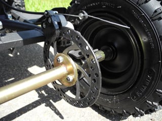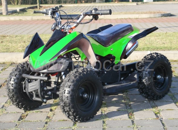 Silný elektromotor 800W přenáší výkon řetězem na obě kola zadní nápravy. Díky gumovým nafukovacím pneumatikám s offroad vzorkem má čtyřkolka vynikající trakční schopnosti. V žádném případě nelze tyto čtyřkolky srovnávat s elektrovozítky s plastovými koly, které mají náhon pouze na jedno kolo a neporadí si ani s malým kopečkem natož terénem.