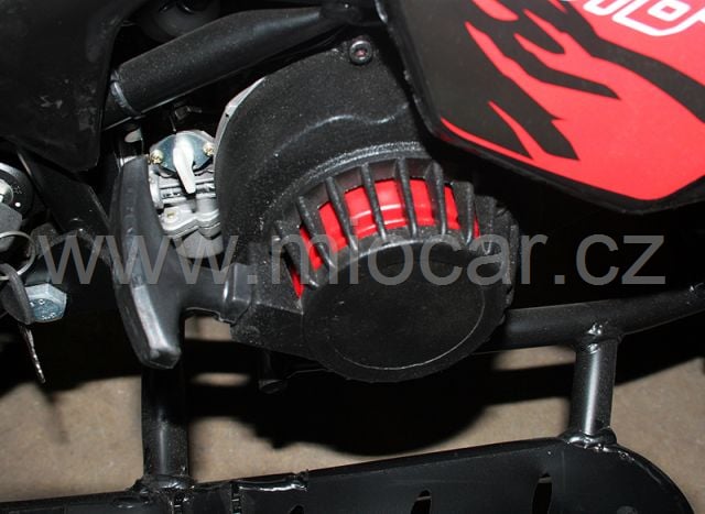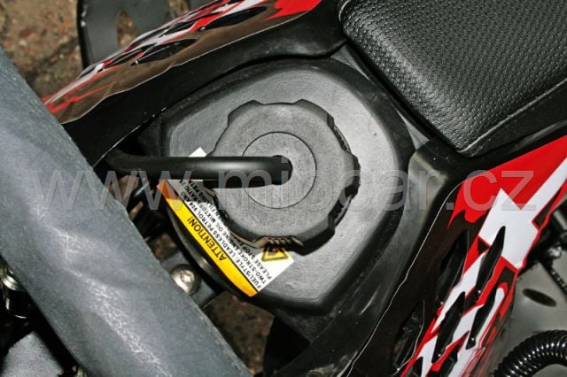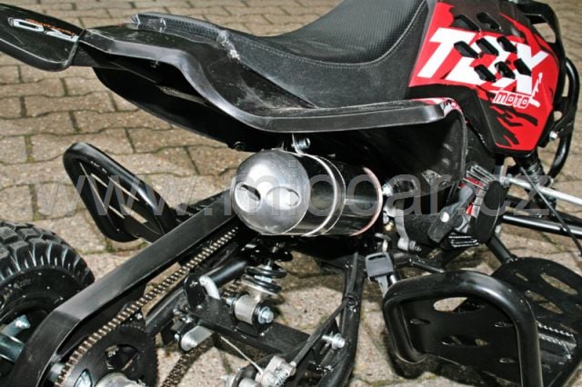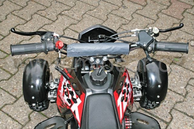 Z hlediska bezpečnosti má tento miniquad co nabídnout: spínací klíček, zesílená zadní náprava, výborné krytí řetězu, ovládání plynu palcem, možnost omezení rychlosti pro děti.