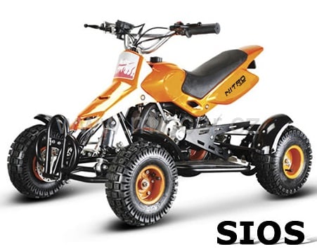 Čtyřkolka miniquad SIOS je nejlepší ve své třídě, bezkonkurenční poměr ceny a výkonu. Certifikát CE ISO9001: 2000, splňuje všechny požadavky na bezpečnost. Super sportovní design nabízí celou řadu dalších vylepšení. Tuningové díly, jako je spojka Bell sport, sportovní odpružení, sportovní výfukový systém s hliníkovou koncovkou, speciální tlumiče, sportovní vzduchový filtr, poloautomatické startování, robusní kovové stupačky.