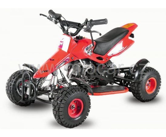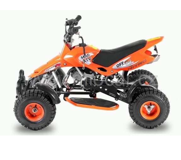 Tato benzínová dětská čtyřkolka s obsahem motoru 49 ccm je určena pro děti cca od 3,5 roku do cca 8 let. Při maximální nostnosti 80 kg uveze bez problémů i dospělého tatínka nebo maminku. Hlavní výhoda těchto benzínových dětských čtyřkolek je jízda po celý den. Když dojde benzín, jednoduše dolejete další a jede se dál.