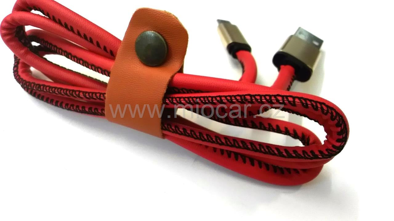 Nabíjecí a datový kabel pro chytrý telefon, tablet nebo navigaci. Délka 100 cm. V luxusním provedení imitace kůže, konektory ALU s efektem broušeného hliníku.