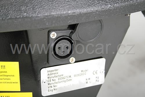 V koloběžce jsou z výroby použity čtyři 12V (12Ah) trakční olověné baterie.