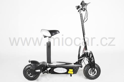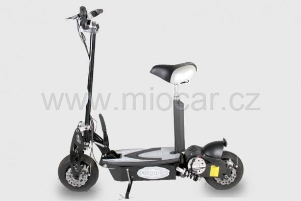 Elektrická koloběžka 1000W, 36V max. do 30 km/h, mód ECO/TURBO, baterie, 3x12V (12Ah), nosnost 100 kg, skládací, přední i zadní odpružení, odnímatelné sedlo.