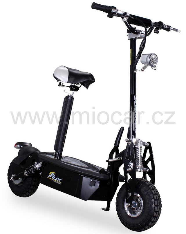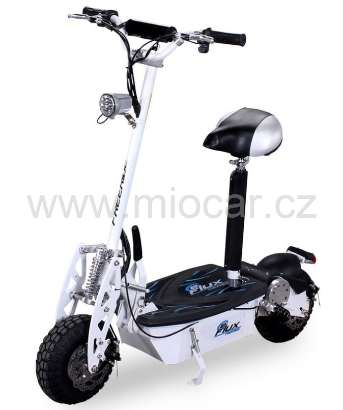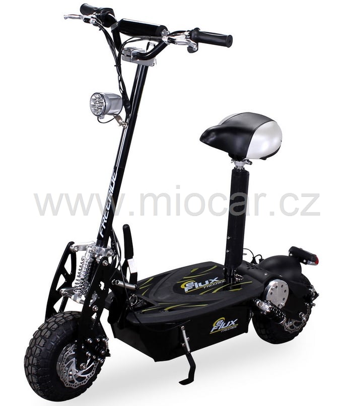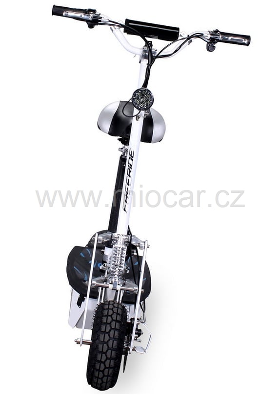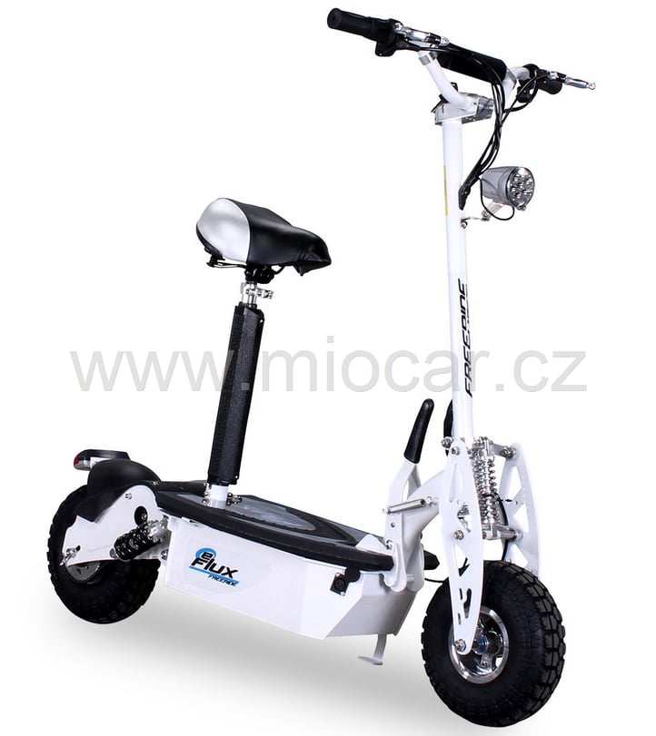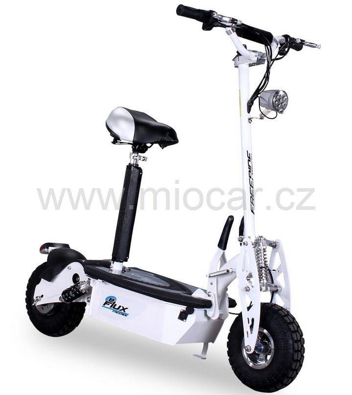 Elektrická koloběžka Freeride 1000W je nový model s maximální rychlostí až 30 km/h , mód ECO 600W / TURBO 1000W, baterie 4x12V (12Ah), nosnost 110 kg, skládací, přední i zadní odpružení, odnímatelné sedlo, volnoběžka, LED osvětlení + brzdové světlo.
