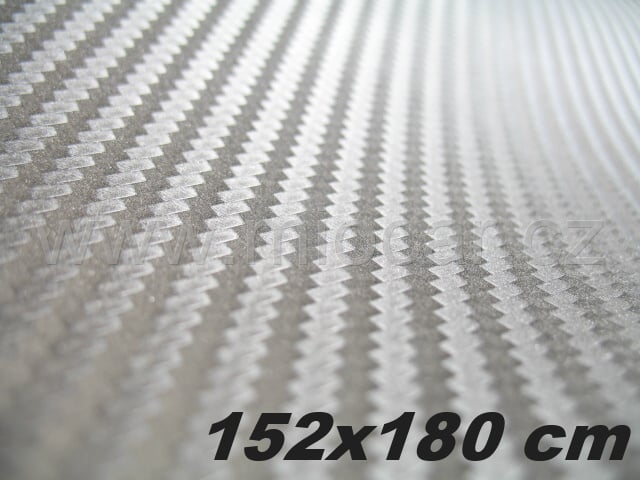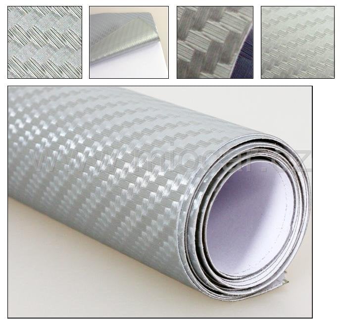 3D dekorační folie, imitace karbon (stříbrná barva) vhodná do interiéru tak i na exteriéru. Po nahřátí fénem dobře tvarovatelná, odolná vůči mrazu a slunečnímu záření.