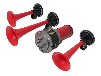 Výkonný, kompresor se třemi zvukovody ke klaksonům.Balení obsahuje hadice, relé,3 zvukovody, kompresor, vypínač a upevňovací materiál. Napájení 12 V.
