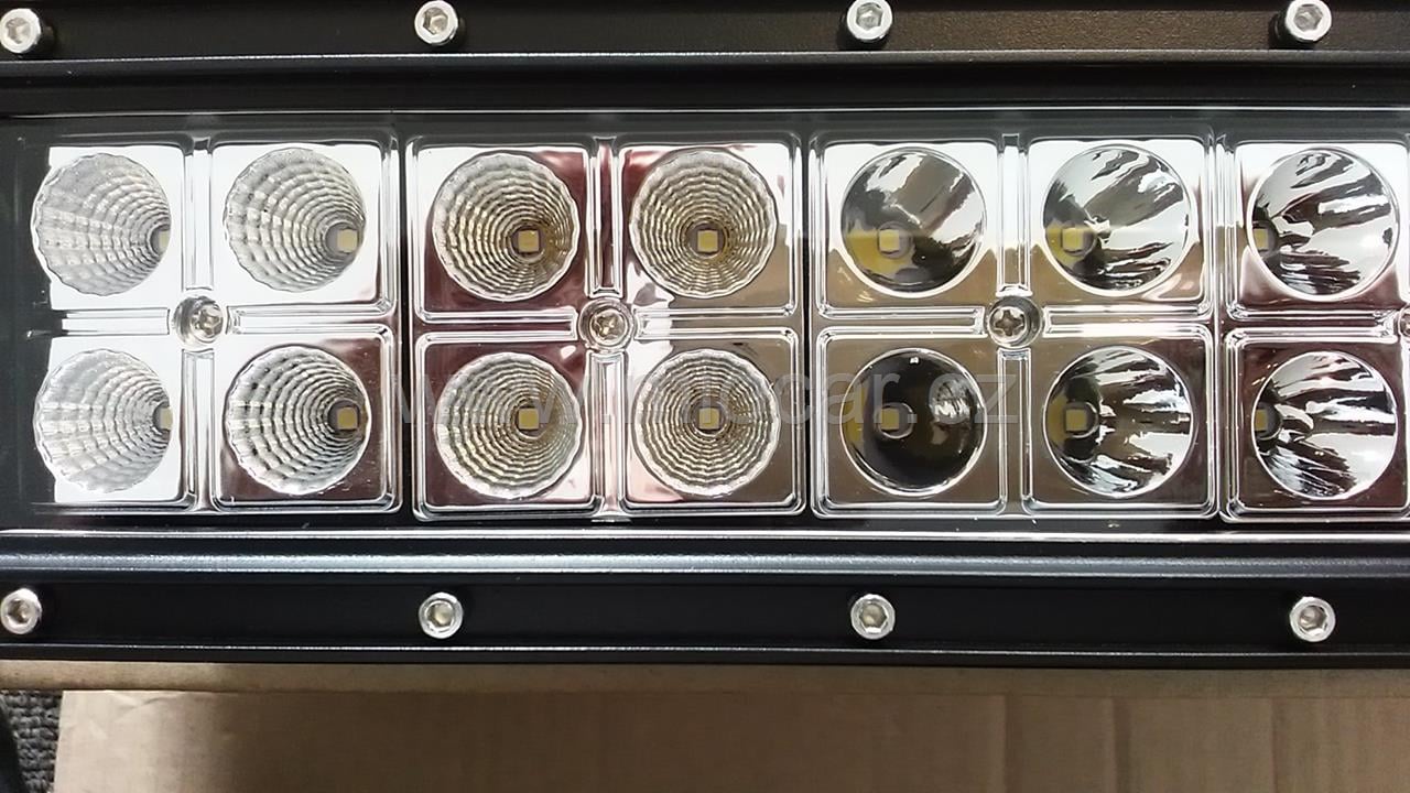 Rozptyl světla 16x LED - 60° z každé strany 4 krajní, 24x LED - 30° ve středu světla.