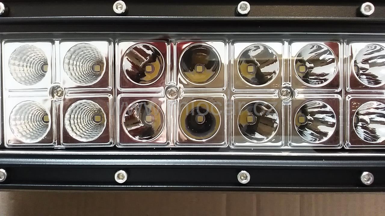 Rozptyl světla 8x LED - 60° z každé strany 4 krajní, 32x LED - 30° ve středu světla.