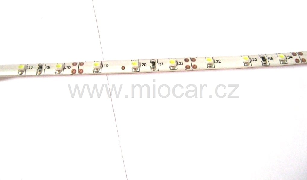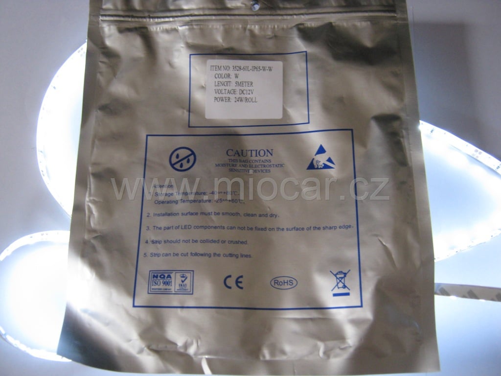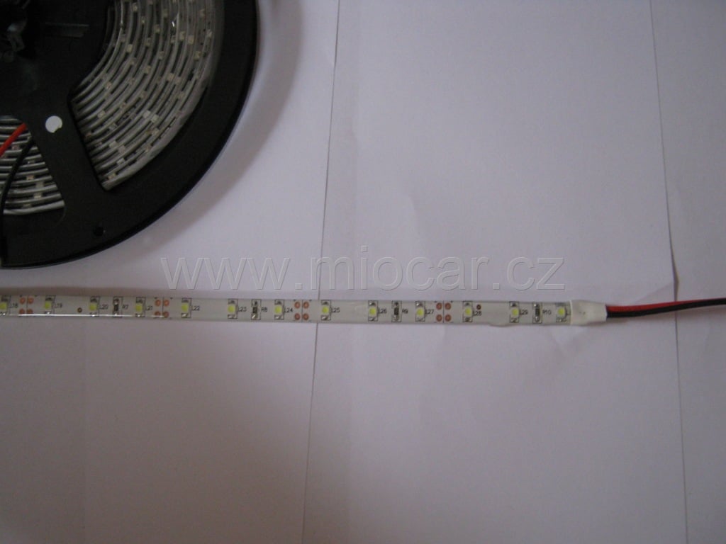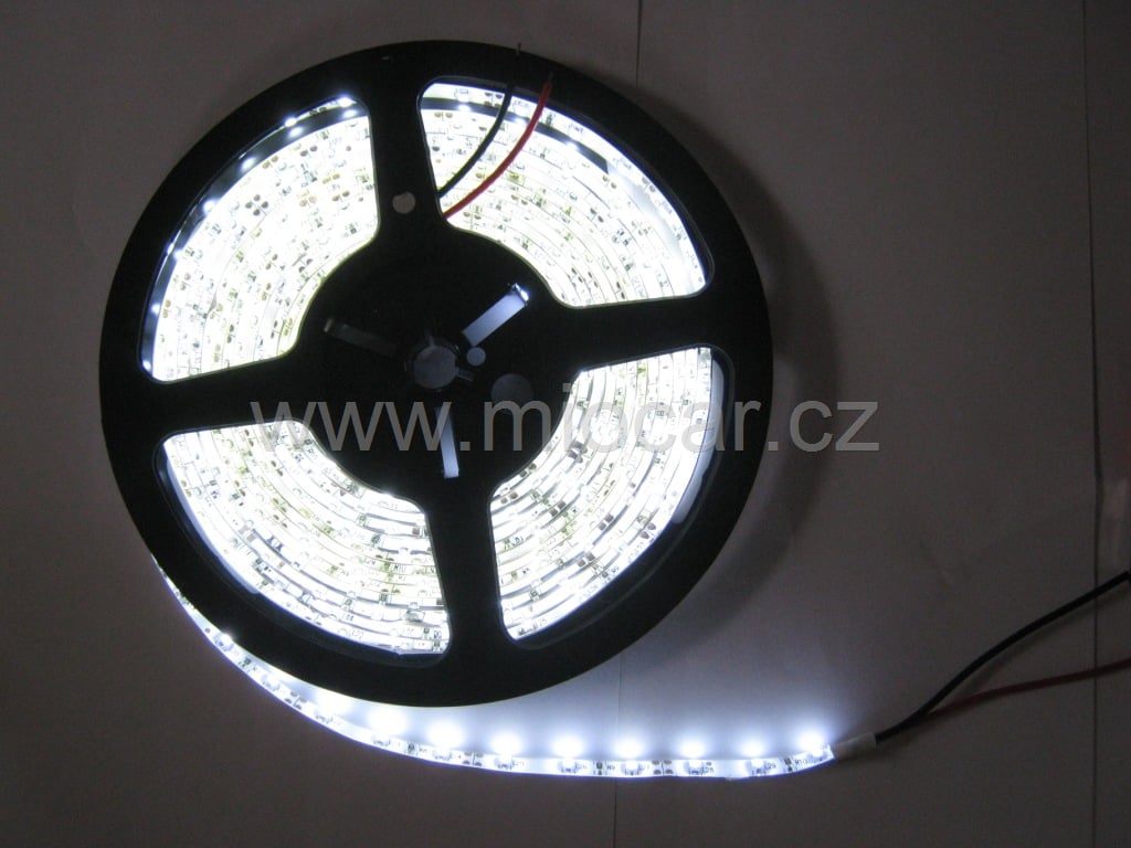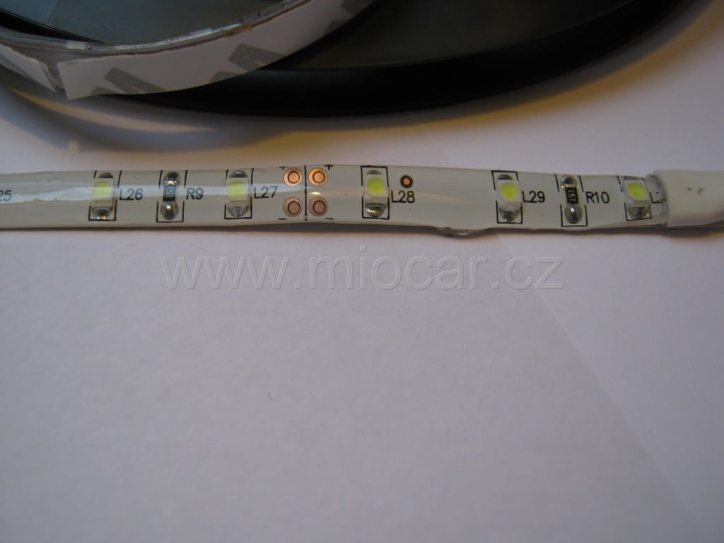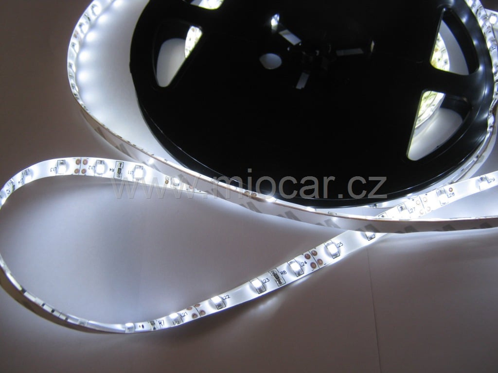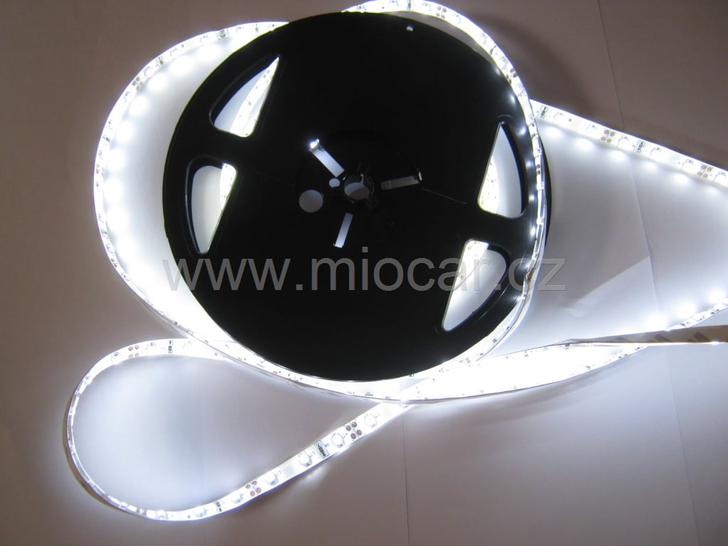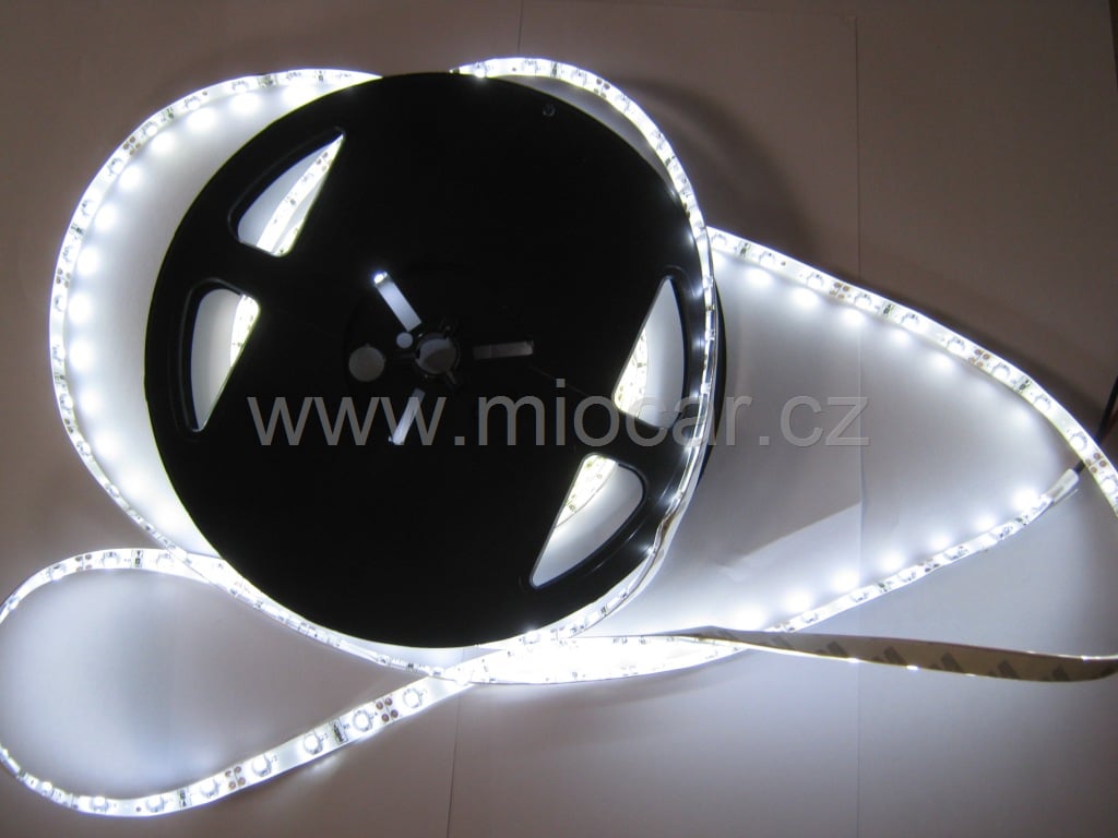 Světelný samolepící pásek SMD LED bílé barvy, vodotěsný, nárazuvzdorný. Lze libovolně zkracovat po každých 5 cm naznačené napajení + -.(viz foto) Vhodné pro interier i exterier. Podsvícení automobilů, osvit bytových jednotek, prodejen, dekorace... mnohostranné využití.