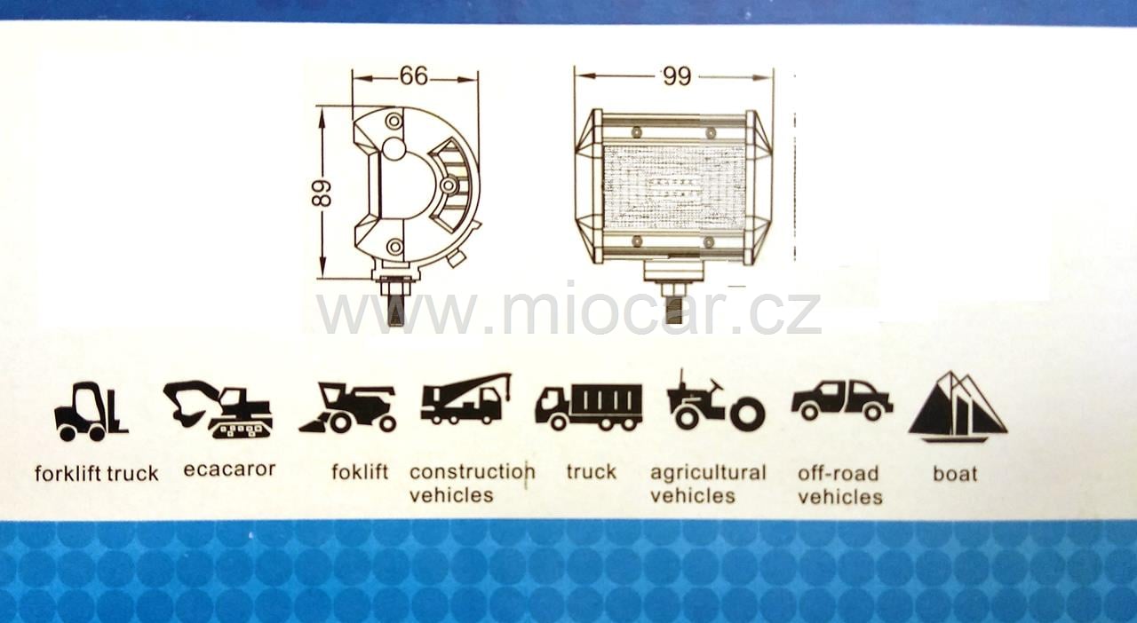 Robusní tělo LED světla je vyrobeno z kvalitní slitiny hliníku. Osazeno 12x LED chip Cree každá 3W. Světla jsou odolné proti nečistotám a vodě se stupněm krytí IP67. Mohou být namontována i držákem nahoru.