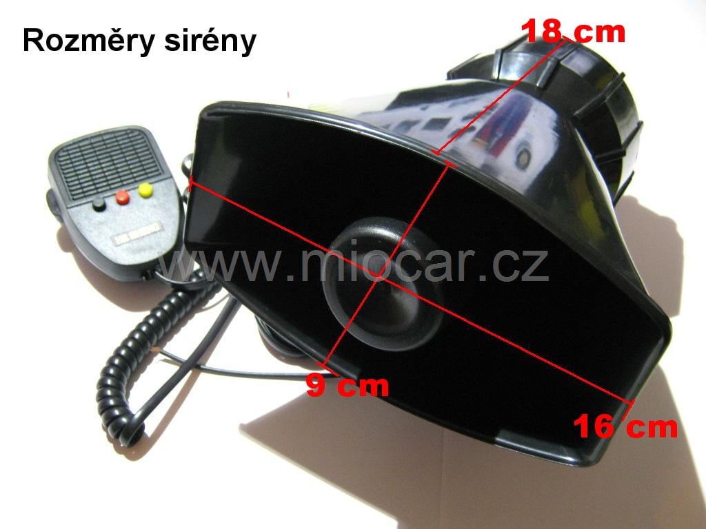 S kabelem do interieru kde je příruční mikrofon jako u vysílačky na mluvené slovo + 7 tóny (2x policie, sanitka, píp..) . Velká slyšitelnost díky 30W siréně, držák na příruční mikrofon k uchycení na přístrojovou desku.