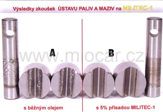 Nezanedbatelnou vlastností MILITECu - 1 kromě výrazného zmenšení třecích odporů a opotřebení, je značná antikorozní ochrana kovu, což předurčuje použití MILITECu - 1 v armádních podmínkách k zabezpečení vysoké spolehlivosti a ochrany zbraní všech druhů a typů.