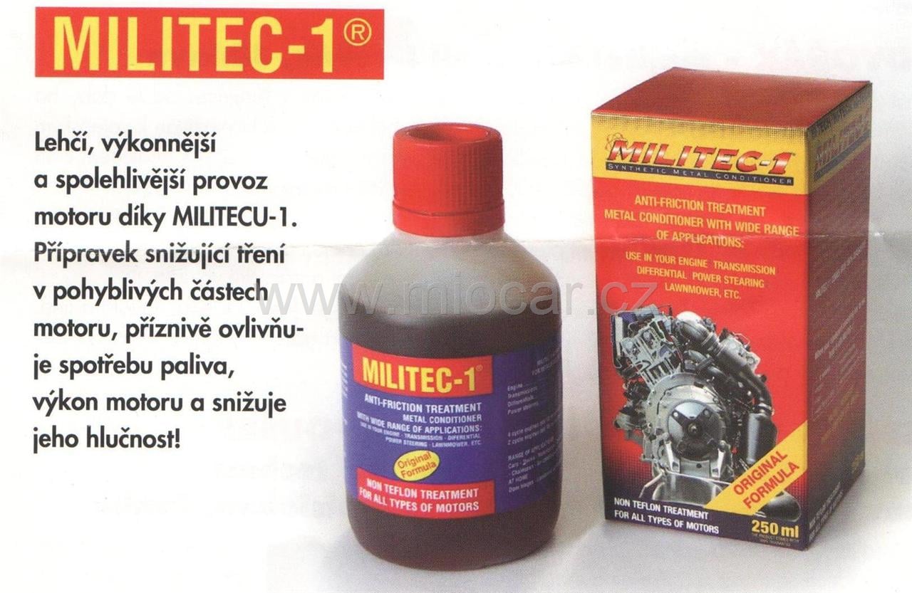 MILITEC - 1 je v ČR atestovaný plně syntetický produkt nové generace, který je pro své unikátní vlastnosti mnohokrát napodobovaný, ale stále nedostižný ve své učinnosti a komplexnosti použití při eliminaci vzájemného tření kovových dílů motoru a strojních zařízení.