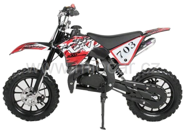 Minicross Toxic KXD 49cc se vyznačuje nejen svým jedinečným designem a kvalitou, ale i celou řadou vylepšení jako jsou - tuningová převodovka (lepší akcelerace), výtrhová pojistka, sportovní vzduchový filtr, hliníkové brzdové páčky, obrácené tlumiče na přední vidlici, vlnité brzdové kotouče, lépe zpřevodováno (lépe jede), sportovní výfuk, celohliníkový startér, pevnější Delta rám.