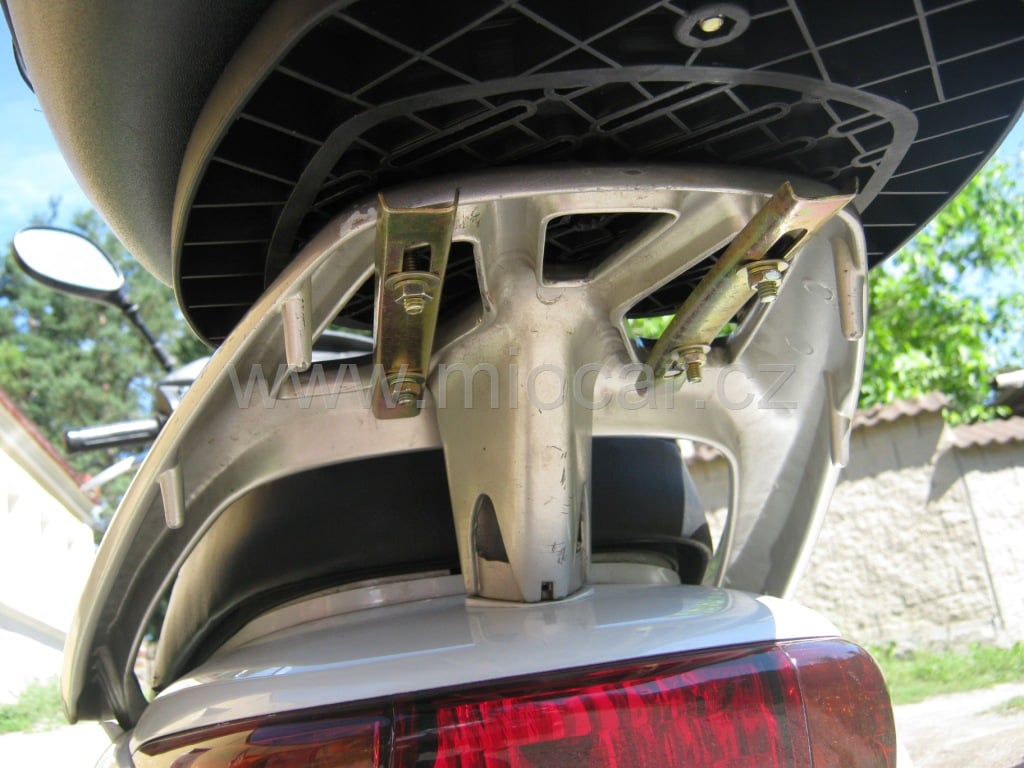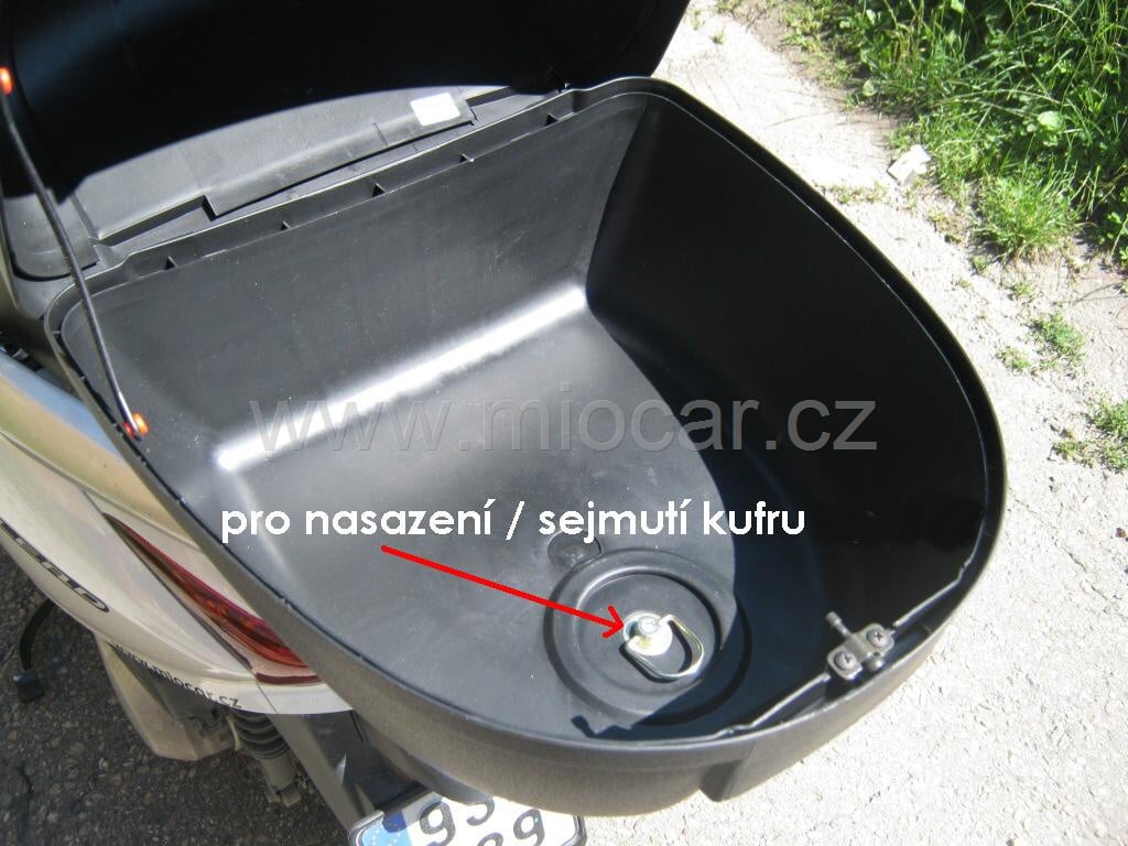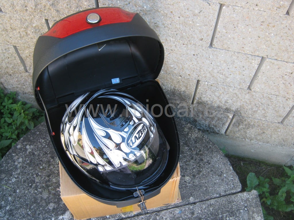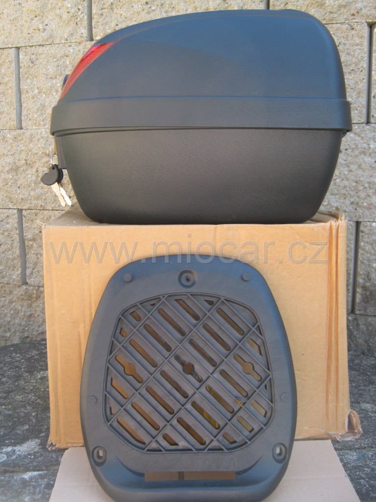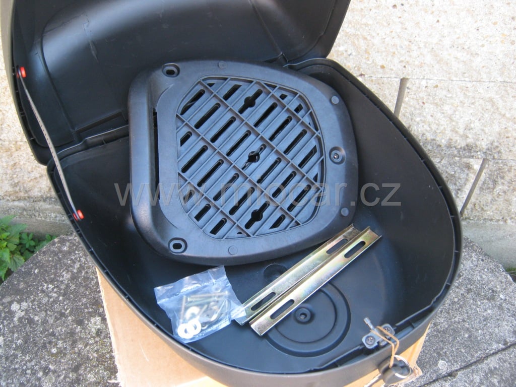 Kufr na motorku, obsahuje montážní plotnu potřebnou k přidělání kufru na moto. Do kufru se vejdou dvě integrální helmy. Kufr lze uzamknout na plotně. Odejmutí přes rychlošroubek z vnitří strany kufru viz foto. Vyrobeno z kvalitního plastu!
