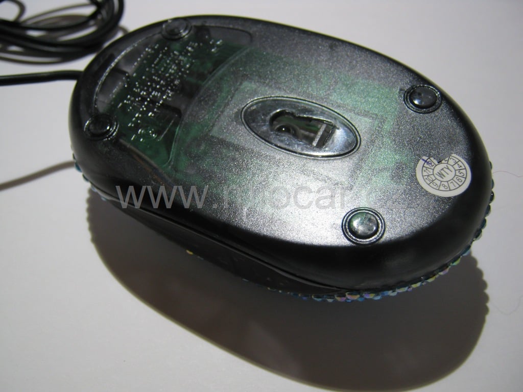 Pohodlné pogumované široké kolečko / roler. Tělo myši poseto kamínky - diamantový design