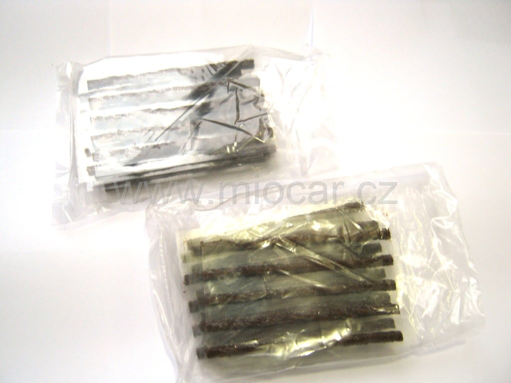 Sada náhradních knotů k opravným sadám bezdušových pneumatik. Vyrobeny z polymeru vyztuženého skelnými vlákny.
