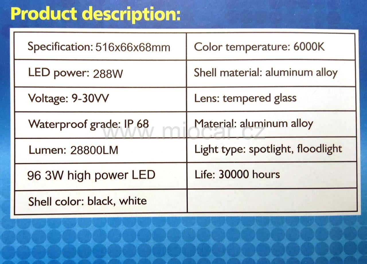počet led: 96 pokročilých led diod každá 3W životnost 30.000 hodin