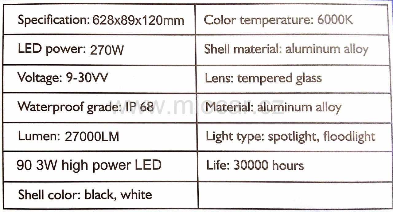 počet led: 90 pokročilých led diod každá 3W životnost 30.000 hodin