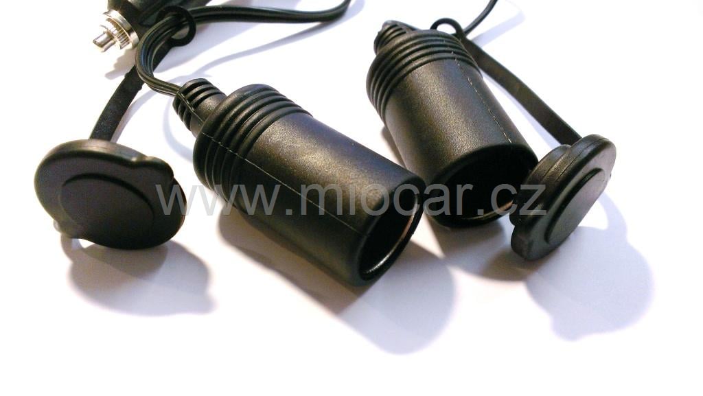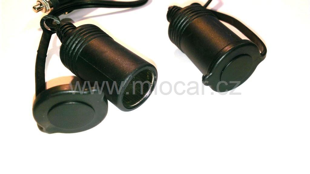 Rozdvojení zásuvky 12V s kabelem. Zásuvky jsou opatřeny praktickou záklopkou proti nečistotám viz fotografie.