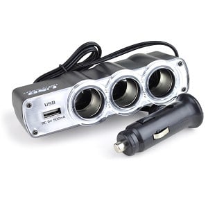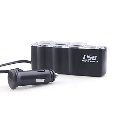 Adaptér, roztrojka do autozapalovače WF-0120 3x12V + USB 5V 500mA s kabelem.