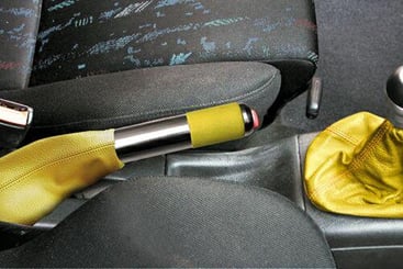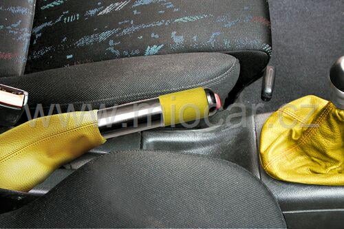 Kožený rukáv řadící páky.Hliníkový kroužek k upevnění na řadící tyč.Výška:23cm, spodní, max.průměr:20cm.