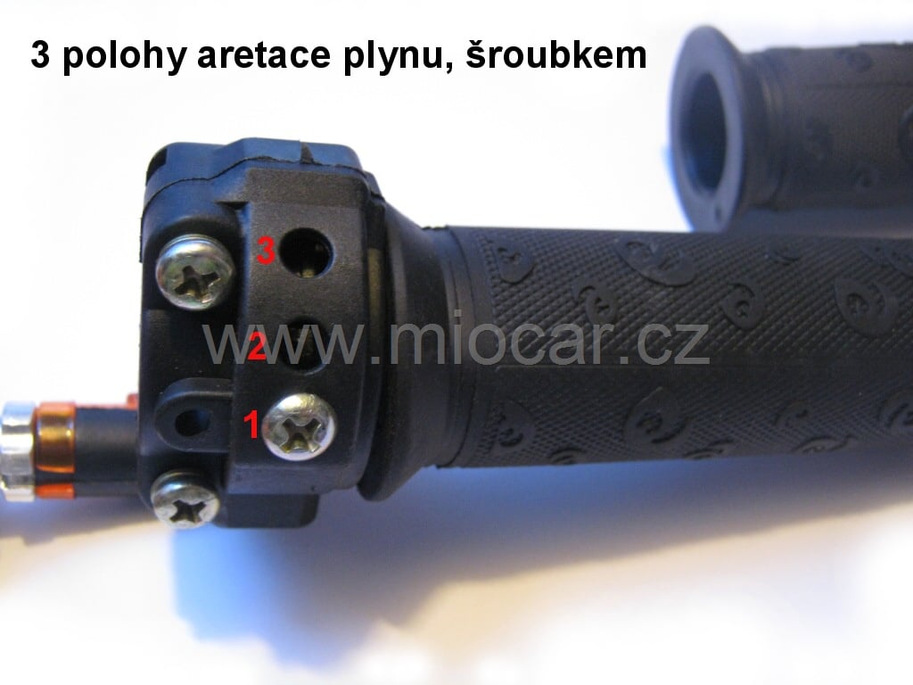 Rychlopal na minike, minibike minicross s s omezovačem. Jednoduchá aretace šroubkem ve třech polohách.