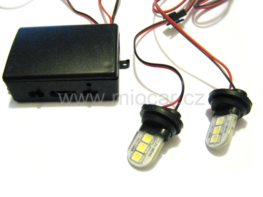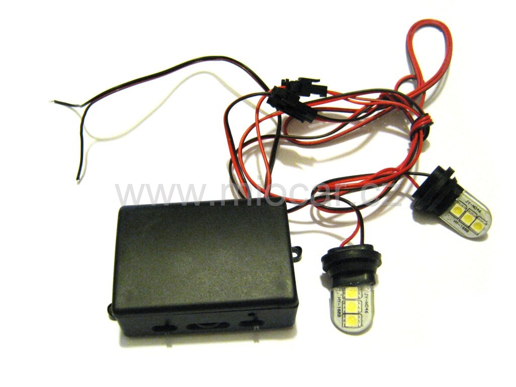 2x 6 SMD led. Regulace záblesků pomoci ovládací krabičky.