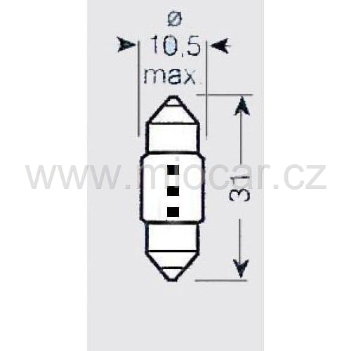 3x supersvítivá SMD LED 11x31mm, napájecí napětí 12V, velmi dlouhá životnost,odolné otřesům,minimální odběr proudu. Pro všechny vozy,dodávky a motocykly s napětím 12V.