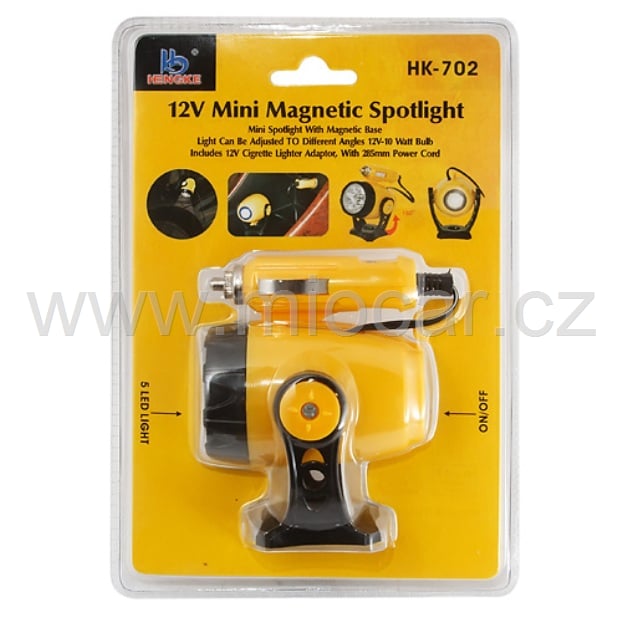 Praktická přenosná svítilna do auta na 12V. 5xLED dioda ve světle a kabelem o délce 270 cm. Kabel je navinutý přímo ve svítilně. Lampa má dvě funkce svítí nebo výstražně bliká ze zadní strany.