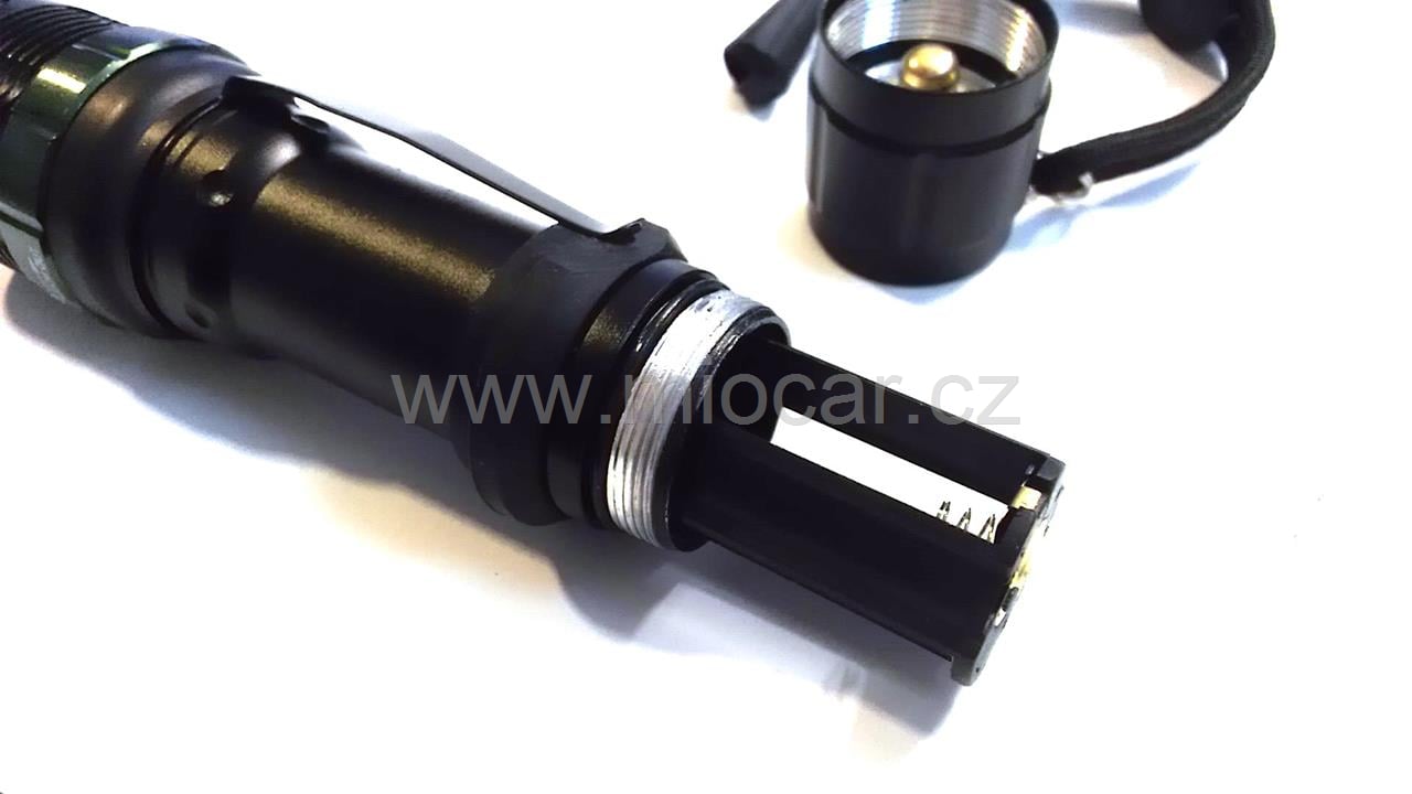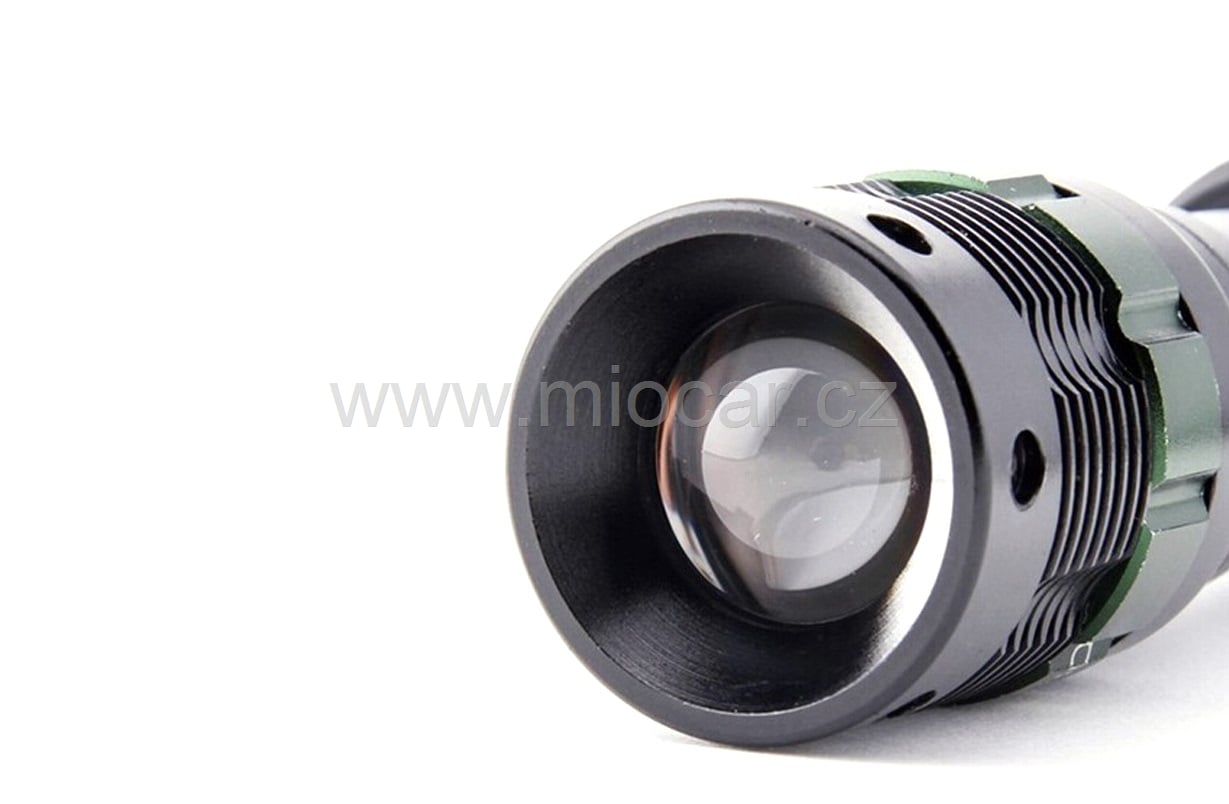 Extrémně vysoká svítivost, LED dioda 3W před diodou je navíc umístěna lupa / čočka. Dosvit svítilny dle nastaveného zoomu až 200 m.