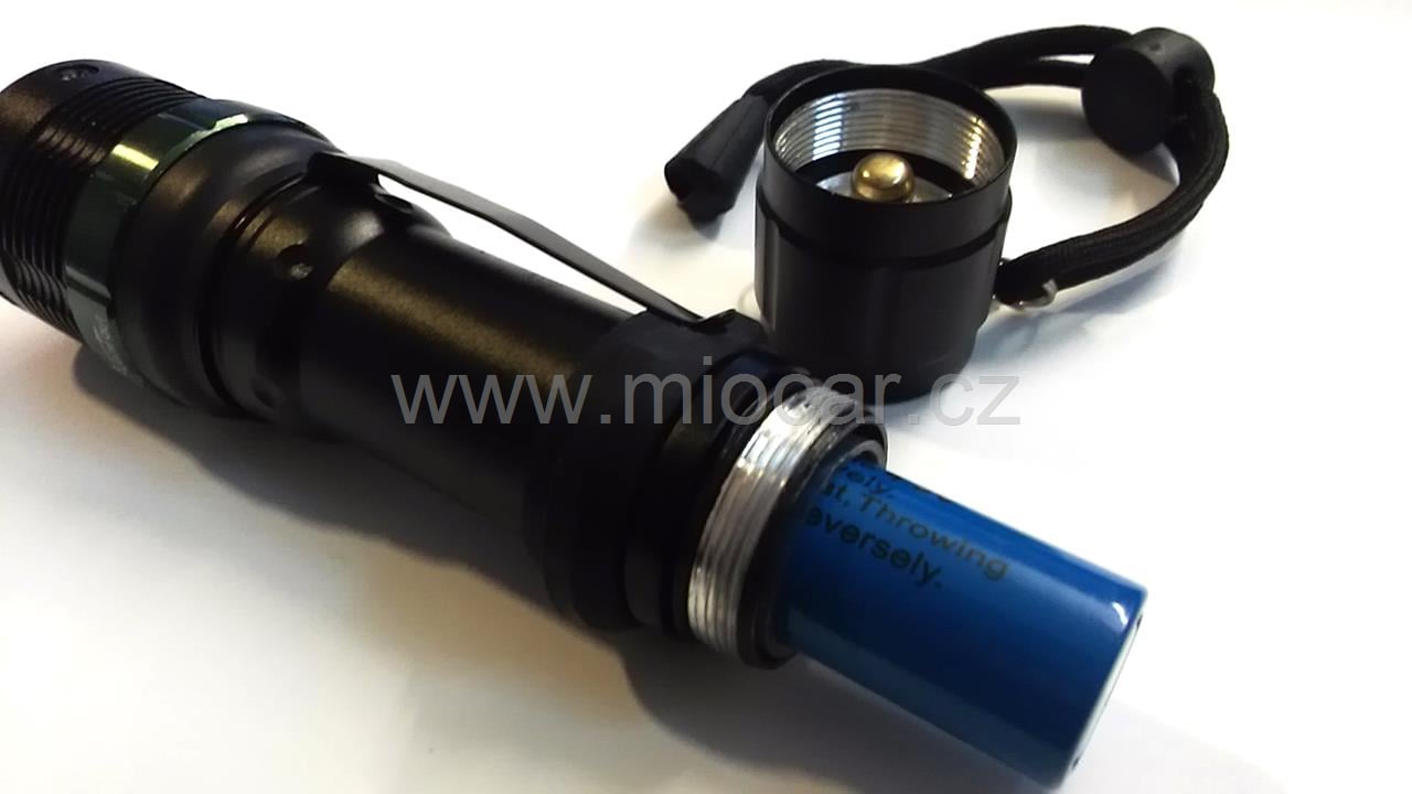 napájení: AKU Li-ion 18650 běžný dostupný typ (dobíjecí je součástí balení) nebo 3xAAA