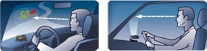 Kontrola rychlosti na tachometru vyžaduje na několik sekund spustit oči ze silnice.