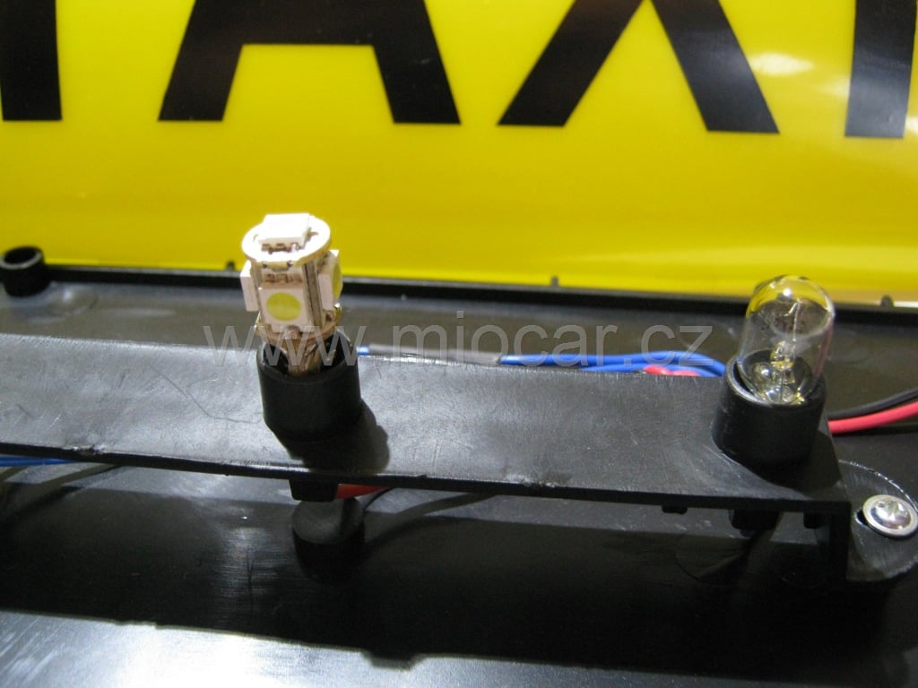 Pro podsvícení TAXI loga jsou použity 3KS klasických bezpaticových žárovek T10 (běžně používané v parkovacím světle). Tyto žárovky lze snadno zaměnit za úsporné LED žárovky T10.