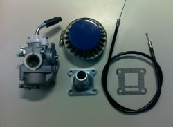 Kompletní karburátor na minibike 49 ccm, minicross a dětskou čtyřkolku 49 ccm. Rozteč děr 38 mm, průměr vstupu 13 mm, manuální páčka sytyče.