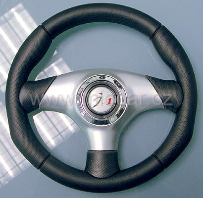 Sportovní volant Sport JS1, stříbrný,průměr 30 cm.Materiál PU