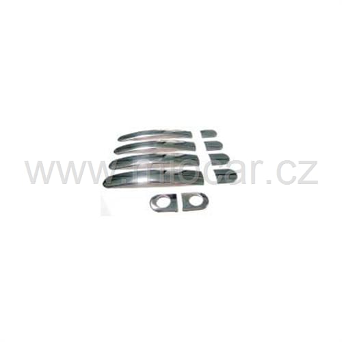 Chromované kryty vnějších klik - plné Materiál: nerezová ocel. Pro vozy Audi TT, Seat Ibiza, Arosa, Toledo, Leon, Škoda Fabia, Octavia, VW Lupo, Golf IV, Bora, Passat 3B. Samolepící. Sada obsahuje 10 kusů, viz. fotografie.