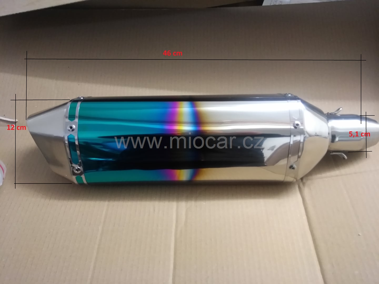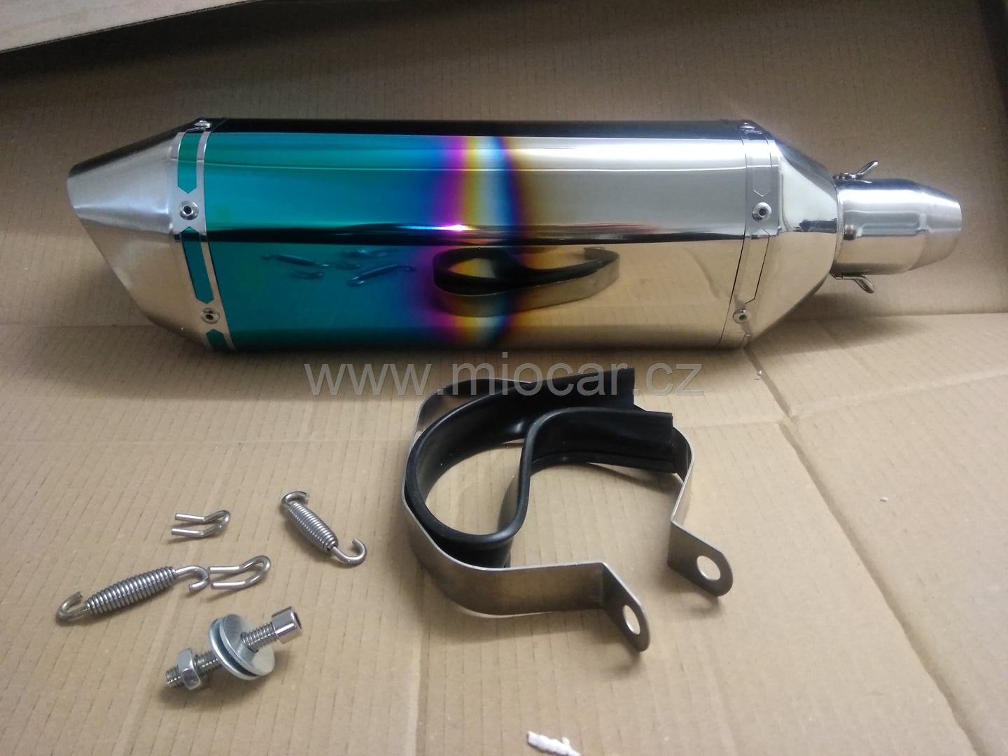 Výfuk 37 cm nejen na moto pro čtyřtaktní motory. Carbon design imitace. Výfuk je univerzální. Killer - tlumivka je nastavitelná a zcela vyjímatelná. Výfuk může být úplně otevřený, pak začíná ta pravá zábava.. super zvuk.