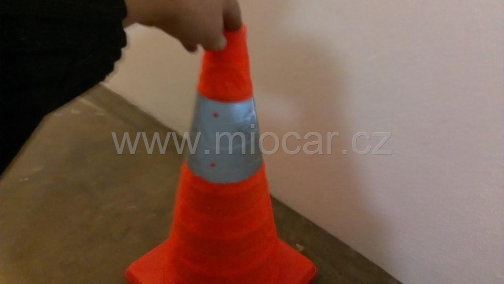Dopravní reflexní skladácí kužel 55 cm. Bezpečností pasivní prvek, velice dobrá odrazová viditelnost reflexního pruhu kuželu při snížené viditelnosti při rozvícených světlech. Dobrý pomocník při dopravní nehodě nebo výměně pneumatiky. Velký ač skladný, případě složení zabere minimum místa ve vašem vozidle.